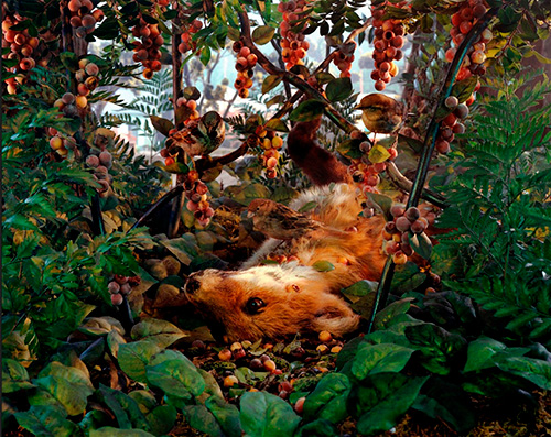 Chez Crewdson aussi, il est donc question de regarder au-delà du visible ou du tangible, deux concepts réunis par un regard unique qui associe l’intérieur et l’extérieur. Pour utiliser une expression chère aux surréalistes, les indices disséminés dans les images pensées par Crewdson encouragent l’observateur à imaginer des récits qui trahissent inévitablement le réel. Dans la série de photographies suivante, Crewdson applique à la lettre ce principe. Natural Wonder (1991-1997) juxtapose des réalités aux logiques différentes : le monde animal d’une part et des espaces pensés par et pour l’humain d’autre part. Il en résulte des collisions impensables donc déstabilisantes. Difficile de ne pas voir dans la réaction interlope des animaux de Crewdson des insinuations proches de celles vérifiables dans Jeune fille mangeant un oiseau de René Magritte. Ce lien avec le surréalisme, certes distant, se matérialise à travers l’idée de donner la possibilité à une réalité autre que celle connue d’exister.