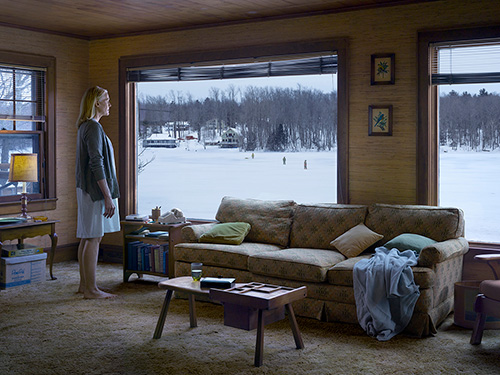 Et pourtant. Quelques photographes tels que Jeff Wall ou Joyce Campbell, pour n’en citer que deux, dans la conception du travail autour de leur art, infléchissent cette idée préconçue. La photographie peut être également un art qui se satisfait d’une élaboration méthodique et calculée de l’image tout en empruntant ouvertement à d’autres langages. Ainsi, dans ce cas de figure, la photographie utilise des mécaniques qui l’entraînent sur le territoire d’une conceptualisation plus ou moins sophistiquée de l’image. C’est sur ce territoire que Gregory Crewdson exerce ses talents.
